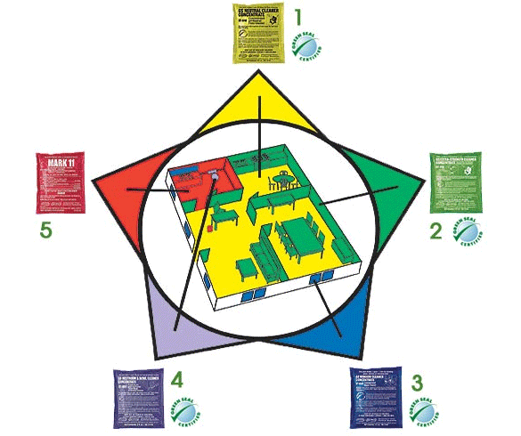 MARK 11 is a phosphate free, pH neutral formulation designed to provide effective cleaning, deodorizing and disinfection in hospitals, nursing homes, schools, food establishments, factories, office buildings, hotels, motels, transportation terminals, athletic and recreational facilities, where housekeeping is of prime importance in controlling the hazard of cross contamination on treated surfaces.