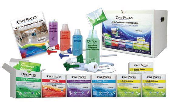 Get your cleaning staff started right with GS 5-Point Green Cleaning System. Filled with Stearns top performing premeasured liquid cleaners, the starter kit also includes color-coded bottles, Poster and other training materials. Color-coded products and packaging improves safety and simplifies training, even for the newest member of your cleaning team.