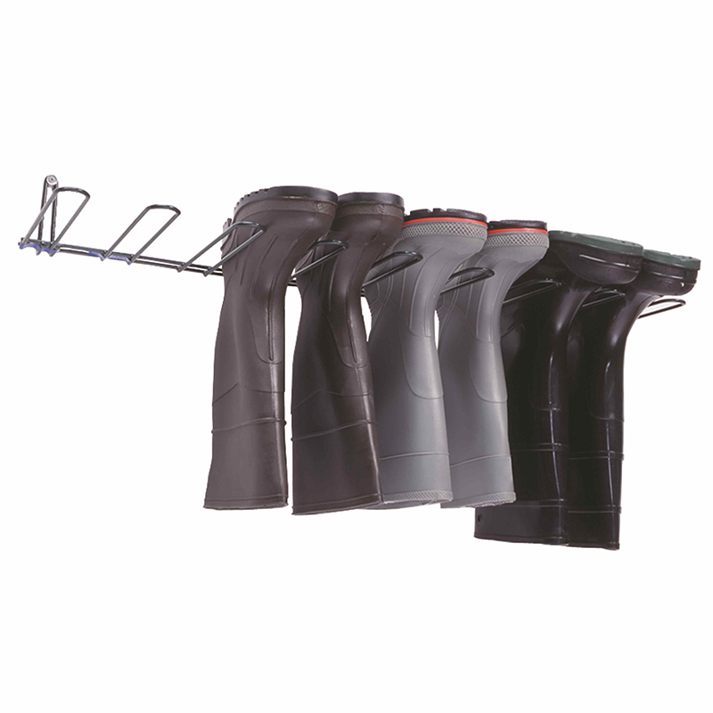 Reduces boot and glove odors. Holds all sizes and styles – rubber, cloth, Gore-Tex™, insulated, long or short, big or small, waders and mittens too! Prevent cracking and permanent bending by holding boots and gloves in their natural shape. Durable steel wire construction. Residential use – black epoxy coating for years of use. Industrial use – heavier weight, green PVC coated to withstand harsh industrial environments (bleaches, common acids, and solvents). Stainless steel for food plants, clean rooms, and manufacturing operations that require stainless steel. Mounting screws are spaced 16″ apart to match wall studs. Screws included.