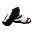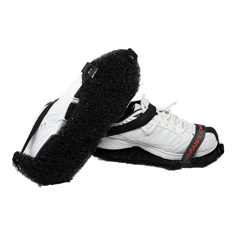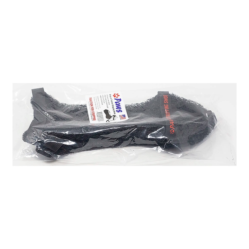 Black stripping pad material with elastic straps that fit over toe and ankle.