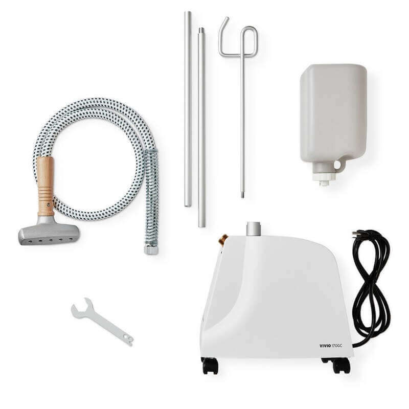 For over 20 years, Vivio has been the name that clothing retailers have trusted. A professional steamer is only as good as its components. To prevent mineral build-up, the most important part is the heating element and for this, we exclusively use our 1300W brass heating element. For safety, we include a wrap-a-round housing that prevents the bottle from falling off. The Vivio 170GC uses a metalhead that gets 20% hotter than a PVC head for taking care of tough wrinkles or to act as an iron.