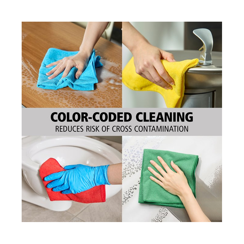 Power your cleaning operations with the HYGEN r-40 Recycled Microfiber Cloths – Blue, 16″×16″, 24-pack. These premium cloths are made with 40% post-consumer recycled polyester, turning recycled plastic bottles into high-performance cleaning tools. With a warp-knit microfiber structure split into 16 ultra-fine filaments (over 95% splitting), these cloths trap dirt and remove 99.9% of tested bacteria and fungi using only water. Designed to remain vibrant even after repeated laundering (200 washes without bleach; 100 washes with bleach), the bold blue color makes them great for color-coded cleaning systems that help avoid cross-contamination. Suitable for wet or dry use, these cloths are ideal for facilities, schools, restaurants, and other environments where hygiene, durability, and sustainability matter.