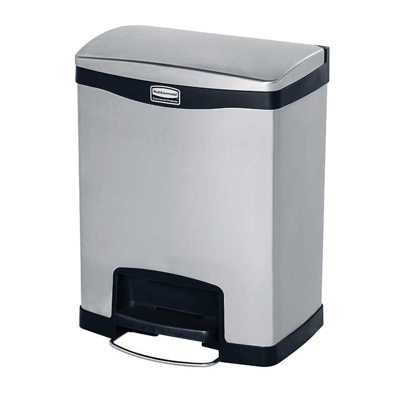 Designed to satisfy the diverse needs of any facility. Maximizes space efficiency with a small footprint and slim profile. Fits in even the tightest spaces. Fingerprint resistant stainless steel is easy to maintain for enhanced aesthetics. Internal hinge design prevents wall damage. Quiet and controlled lid-closure minimizes noise. Liner retainer band and cinch easily and securely holds can liners. Increased foot pedal clearance for easier access and operation.