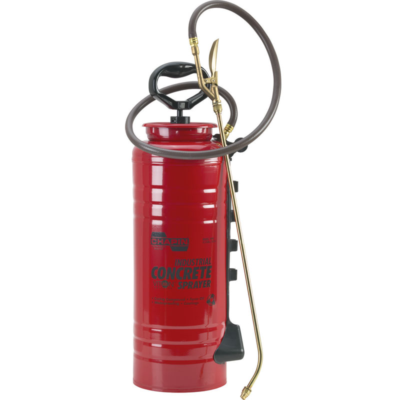 Industrial and construction grade compressed air tank sprayer is designed for concrete applications. Tri-Poxy lined steel tank provides triple protection against corrosion, rust, and damage from denting. Features a 4 inch wide mouth for easy filling and cleaning.