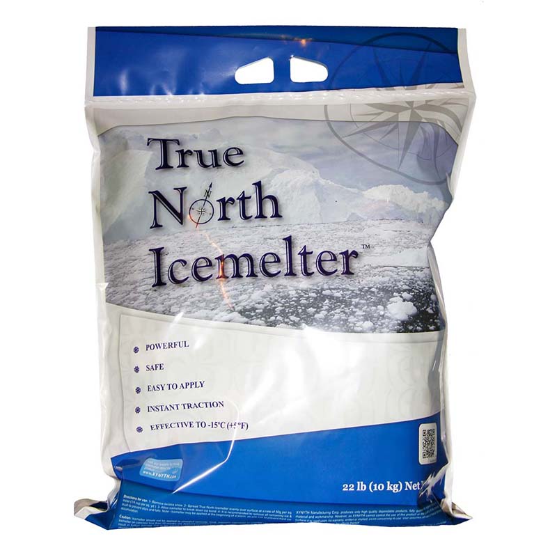 The True North™ Ice Melter — 100 × 22 lb bags pallet provides an economical and effective solution for winter deicing needs. Its chloride blend is formulated for fast action on ice and snow, delivering instant traction and long-lasting melt performance down to temperatures around −15 °C (+5 °F). True North™ does not contain dangerous chemicals or magnesium chloride, so it does not leave oily residue that can track into buildings or harm nearby surfaces. Unlike some traditional ice melts, it also includes potassium chloride to help reduce burning of lawns, shrubs and pets’ paws.