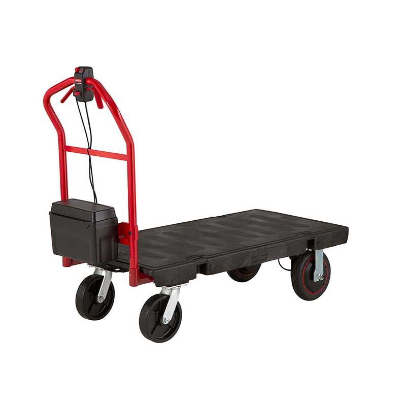 Ideal for users who want to add the benefit of motorized power for moving heavy loads to existing Rubbermaid Commercial Platform Trucks. Two motorized 10" drive wheels assist in moving heavy loads up to 1,000 lbs and may reduce strain experienced by users when pushing heavy trucks and moving long distances. Dual onboard battery components provide back-up power without having to plug in the entire truck; minimizing costly workflow disruptions due to battery switchouts. Handbrake is available for emergency purposes. Centralized control system features variable speed from 0-3 mph with forward and reverse settings. Removable key prevents unauthorized use of power.