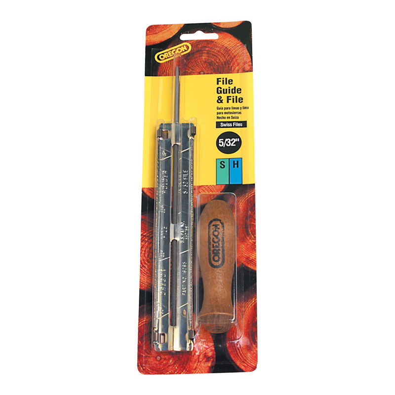 Filing guide is inscribed with angle indicators to maintain proper file position. File guide holds file for a proper sharpening angle.