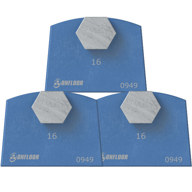 The 16 grit train segment abrasive tool creates a deep profile and is great for removing thick epoxy, thin-set and most other thick floor coatings. The shape of the Quick tool train segment ensures that a sharp tapered edge impacts the material being removed. The 16 grit abrasive tool also prepares the surface as it removes the unwanted material from floors. Optimum weight is 20-30 lbs per segment.