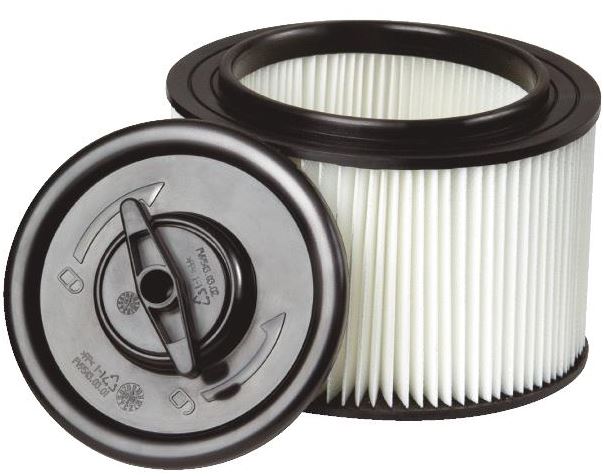 Heavy-duty cartridge filter for use with four gallon floor of jobsite vacuums.