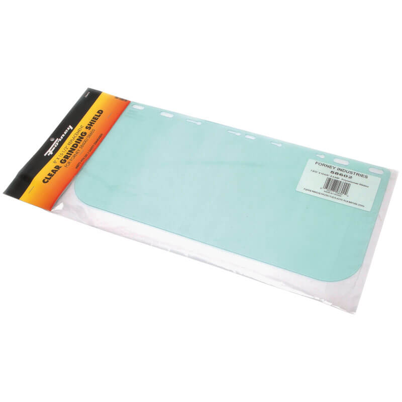 This is the replacement Polycarbonate Face Shield screen for Forney grinding shield assemblies. Meets ANSI (American National Standards Institute) Z87.1 Safety Standards. Not to be used for oxy-acetylene welding. 15-1/2" x 8".