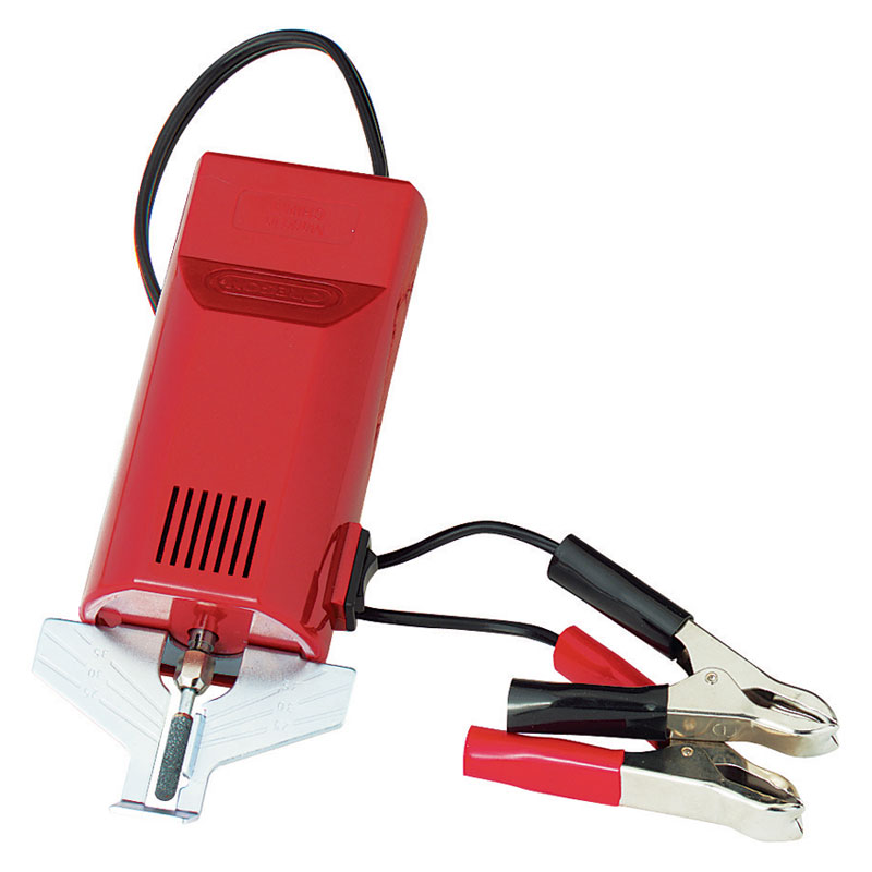 Precision electric sharpener works from a 12V battery for in-the-field sharpening. Easy-to-use, the chainsaw sharpener has a built-in depth gauge and a high-impact motor housing. Comes with 2 sharpening stones.