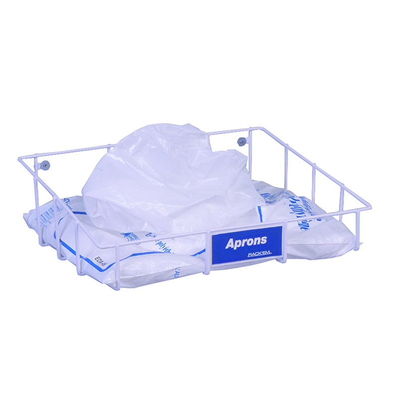 Holds all styles of horizontal packaged bagged and boxed disposable aprons.