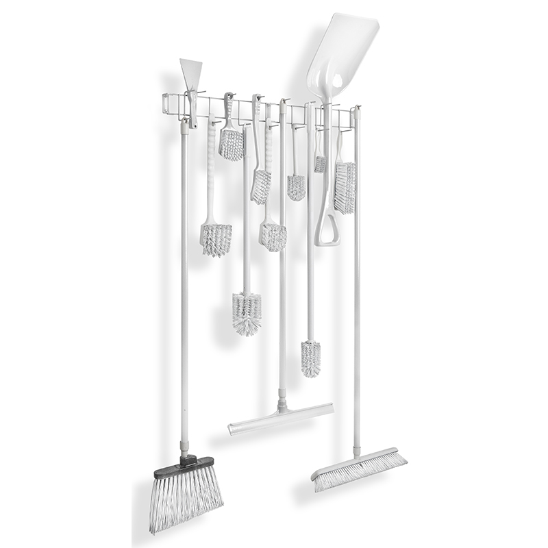 Hold sanitation brushes & tools together in one area, for one machine, or for one operation.