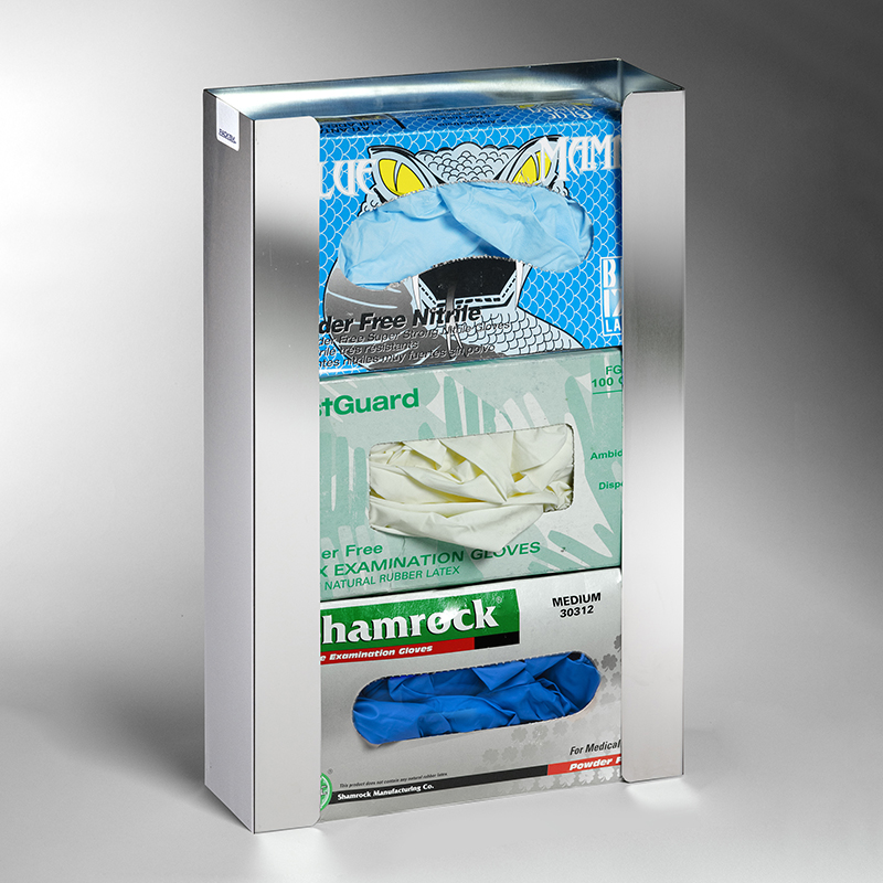 3- Box Stainless Steel Glove Box Dispenser, table or wall mount for easy access. Dispenser only, accessories not included.