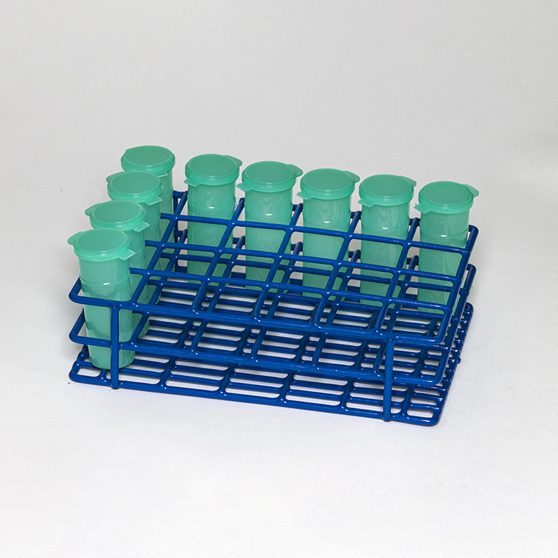 Elevate your laboratory efficiency with our 24 pocket 2 oz. vial rack, meticulously designed to accommodate your storage needs. Each compartment, measuring 1.38″ L x 1.38″ W (I.D.), provides a snug fit for secure storage of vials. Crafted from durable steel and coated with blue PU vinyl, this rack ensures both durability and longevity in any lab environment. The vibrant blue color not only adds a touch of style but also aids in easy identification of vials. With its compact design and sturdy construction, this rack is an essential addition to any lab seeking to streamline workflow and maintain a clutter-free workspace.