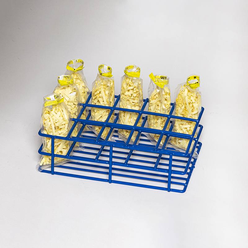Upgrade your laboratory setup with our Rack'Em 15-specimen bag rack, meticulously crafted to optimize efficiency. Each compartment, sized at 1.75″ L x 2″ W (I.D.), provides ample room for secure storage of specimens. Constructed from durable steel and coated with blue PU vinyl, this rack ensures both strength and longevity. The vibrant blue color not only adds aesthetic appeal but also facilitates easy identification of specimens. With its compact design and sturdy construction, this rack is an essential addition to any lab environment. Streamline your workflow and maintain a clutter-free workspace with this versatile storage solution.