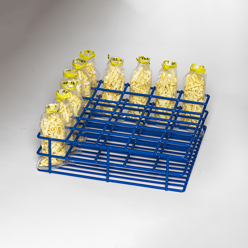Revolutionize your laboratory organization with our Rack'Em 30-specimen bag rack, engineered for optimal functionality. Each compartment, measuring 1.46″ x 1.9″ (I.D.), offers ample space for secure storage of specimens. Crafted from sturdy steel and coated with blue PU vinyl, this rack ensures durability and resilience in any lab setting. The vibrant blue coating not only adds a touch of style but also aids in easy identification of specimens. With its compact design and robust construction, this rack maximizes efficiency and minimizes clutter in your workspace. Upgrade your lab setup today with this essential storage solution.