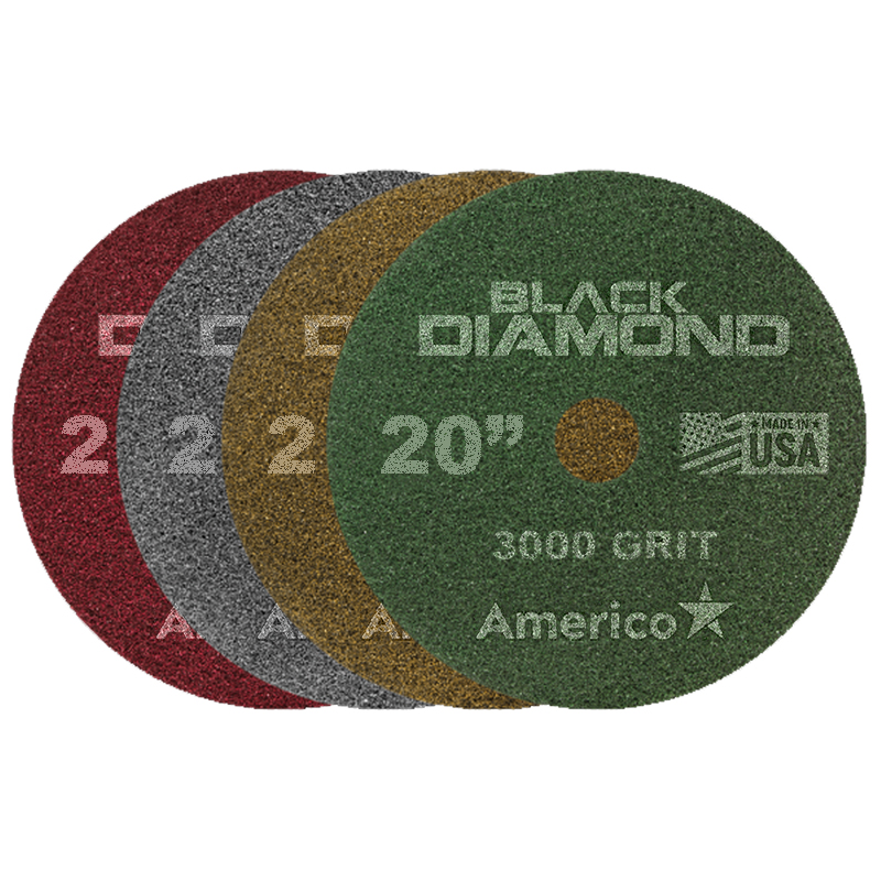 The Black Diamond Cleaning and Polishing System Starter Pack includes four floor pads, one in each grit level. Ideal for the restoration, deep cleaning and polishing, and daily maintenance of concrete and natural stone floors.