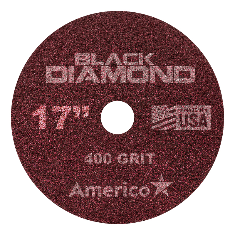 Black Diamond 400 is a diamond impregnated floor pad used for light honing, heavy duty cleaning, and restoration.