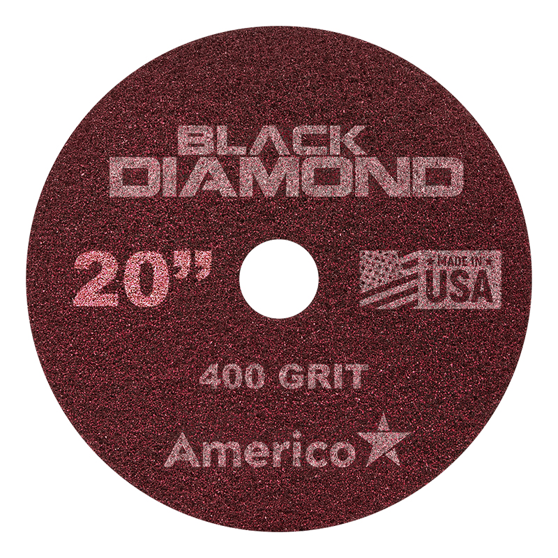 Black Diamond 400 is a diamond impregnated floor pad used for light honing, heavy duty cleaning, and restoration.