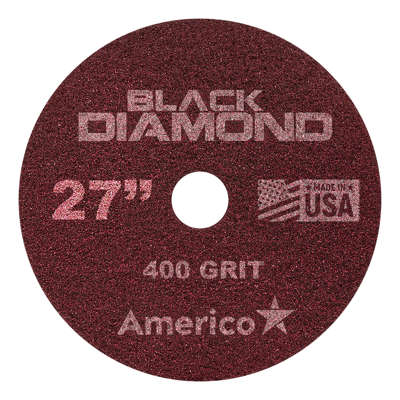 Black Diamond 400 is a diamond impregnated floor pad used for light honing, heavy duty cleaning, and restoration.