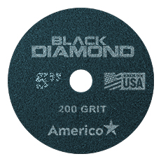 The toughest restoration jobs call for the toughest floor pad. The Black Diamond 200 grit diamond pad is specially formulated for heavy-duty cleaning of worn concrete and stone floors. Our proprietary Integrated Matrix Technology™ combines the abrasive power of industrial diamonds with a stiffer, more aggressive base web designed for intense restorations. The Black Diamond 200 grit pad’s enhanced cutting capability effectively removes scratches and stains, leaving a clean, matte surface prepared for the subsequent Black Diamond steps.