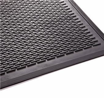 A solid rubber mat for any exterior entranceway. The rubber scraper mat's superior molded tread is designed to aggressively scrape shoes clean of dirt. It traps dirt and moisture below the walking surface at the base of the mat. Textured backing helps keep the mat in place with beveled edges to provide additional stability and safety to prevent slips and falls.