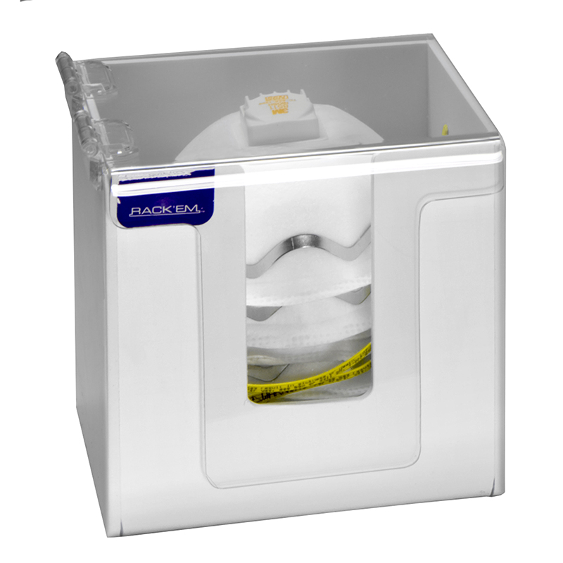 Introducing our Rack'Em Dust Mask Dispenser in durable white plastic, featuring a convenient lid for added protection and hygiene. This dispenser offers a practical solution for organizing and distributing dust masks effectively in any workplace environment. The inclusion of a lid helps keep the masks clean and protected from dust and contaminants when not in use. Its compact design allows for easy mounting on walls or placement on surfaces, ensuring accessibility where it's needed most. Elevate your safety standards and streamline your workflow with our Rack'Em Dust Mask Dispenser with Lid, providing efficient protection in a sleek white finish.
