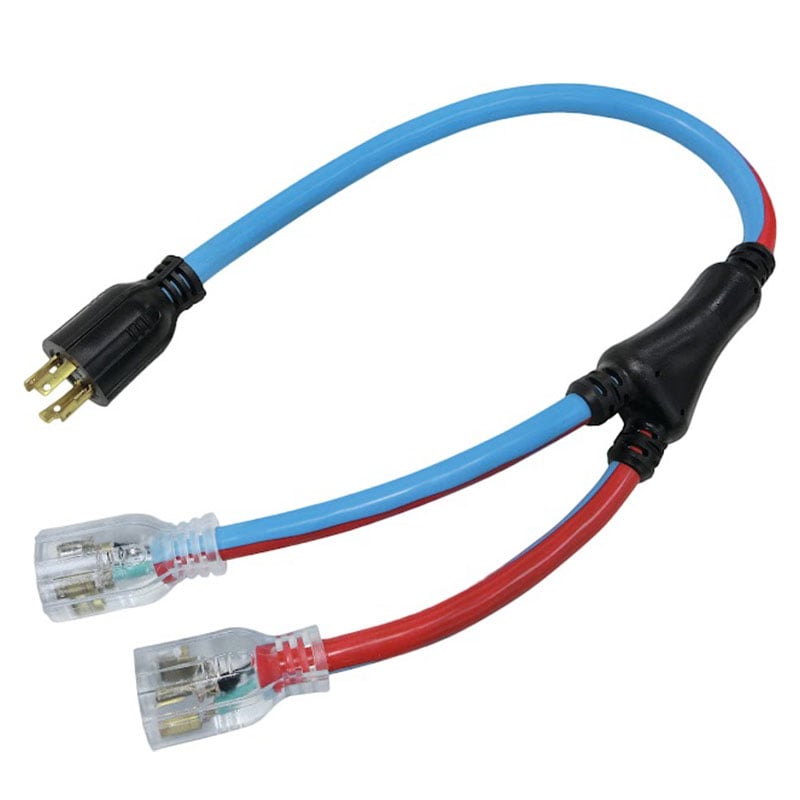 3-foot STOW 10/4 Y-cord. Features 10-gauge, 4-conductor cord, with a 20-amp 125-volt/250-volt rating. 2500-watt. Ideal for indoor or outdoor generator applications. Channellock Blue. UL (Underwriter's Laboratories) listed.