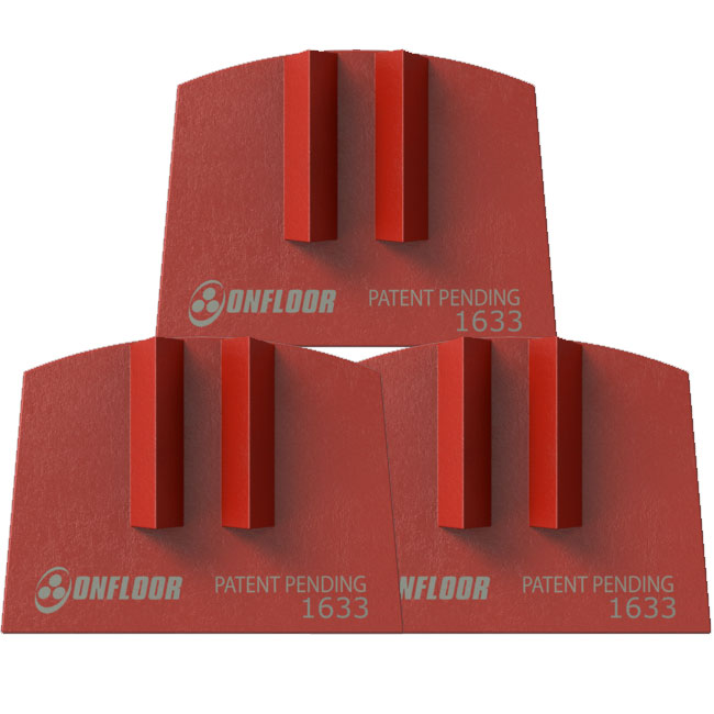 The RipTip-2 has two segment tips and is for use with Onfloor's 16", 20" and Edger floor surfacing machines, 250 lbs. max. The tool will easily remove mastic and carpet glue without using caustic removers while preparing the concrete surface at the same time. The RipTip is also great for the removal of any type of coating and performs extremely well on hard concrete for surface preparation.