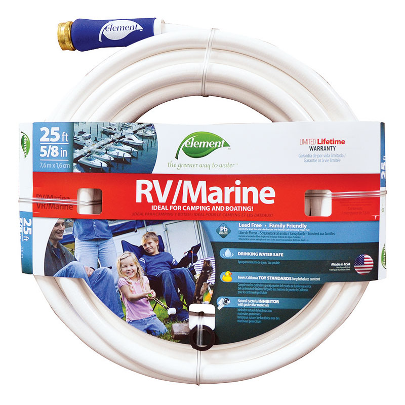 The Element RV&Marine water hose has a lightweight and flexible design to easily store and transport from a campground or dock. the aircraft-grade aluminum couplings are easy to connect and durable enough for long-term use. This versatile water hose has a burst strength of 300 PSI, providing you the power you need to give your RV or boat a thorough rinse when dirt and dust have built up.