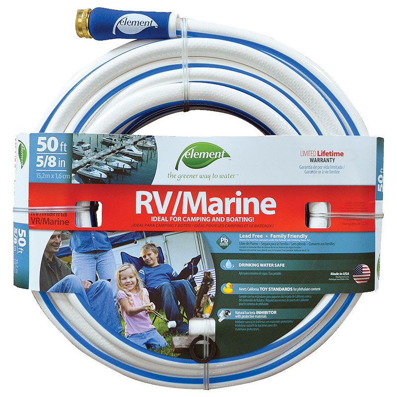 The Element RV&Marine water hose has a lightweight and flexible design to easily store and transport from a campground or dock. the aircraft-grade aluminum couplings are easy to connect and durable enough for long-term use. This versatile water hose has a burst strength of 300 PSI, providing you the power you need to give your RV or boat a thorough rinse when dirt and dust have built up.