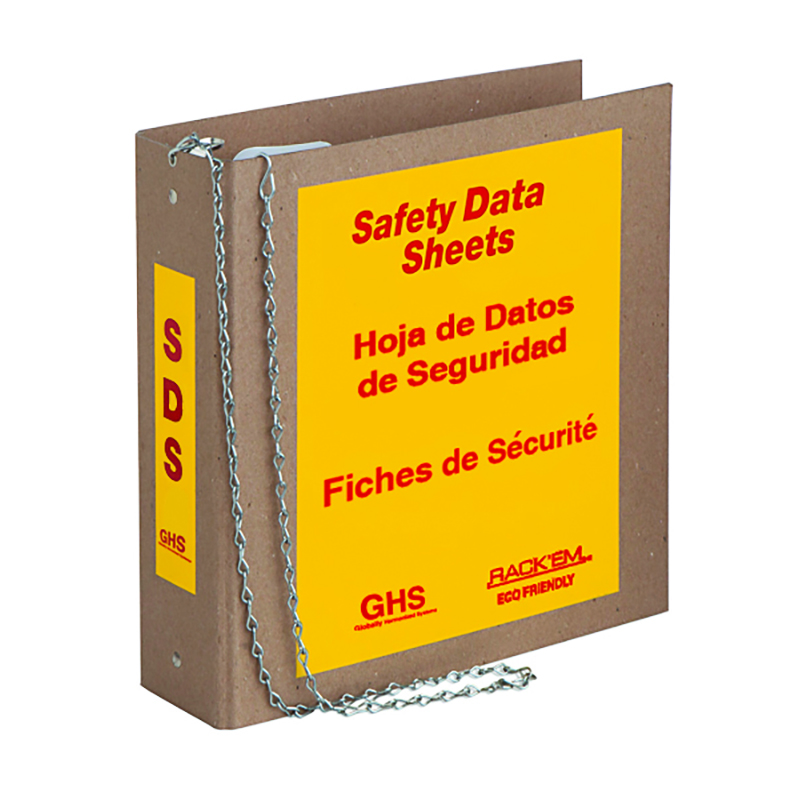 Organize your safety data sheets with the 3" Eco Friendly Tri-Language SDS Binder. Crafted from recycled chipboard, this robust 3-ring binder is designed for durability and sustainability. It features clear, tri-language labels in English, Spanish, and French Canadian to ensure critical safety information is accessible to all. The included 36" chain provides secure attachment, keeping your binder exactly where you need it. Ideal for workplaces committed to both safety and environmental responsibility, this binder combines functionality with an eco-conscious design. Choose a reliable, green solution for managing your SDS documents.