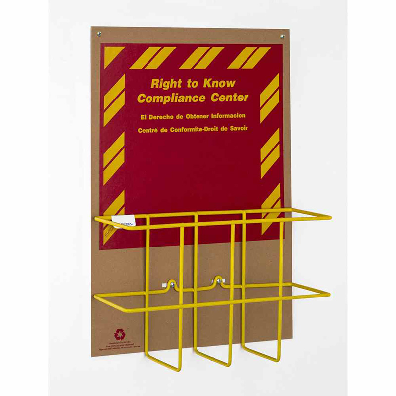 Promote a safe and sustainable workplace with the Economy ECO Friendly SDS Right-to-Know Center. This compact center features a bright yellow wire rack and a 3-language sign made from 100% recycled chipboard, clearly displaying essential Safety Data Sheets (SDS) information in English, Spanish, and French Canadian. With no binder required, this minimalist setup ensures easy and immediate access to vital chemical hazard sheets. Ideal for any environment committed to safety and environmental responsibility, this RTK Center is your straightforward solution for organized and accessible safety information.