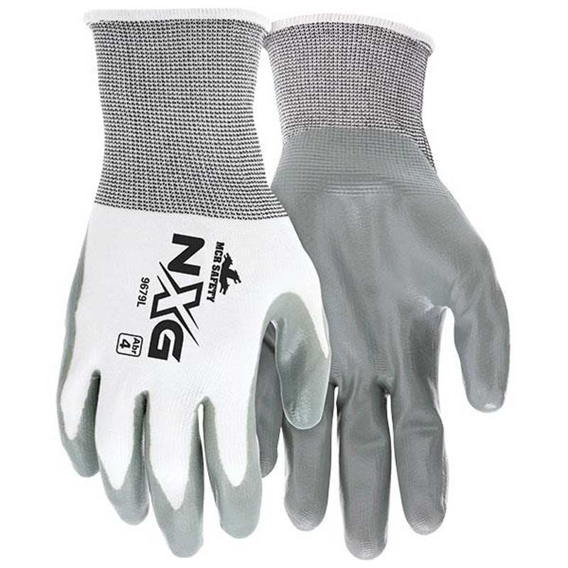(12) MCR Safety NXG Nitrile Dip Gloves Large - White/Gray