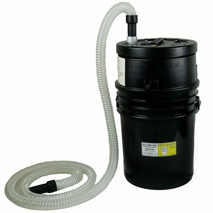 - Self-contained 5 gallon HEPA filter bucket