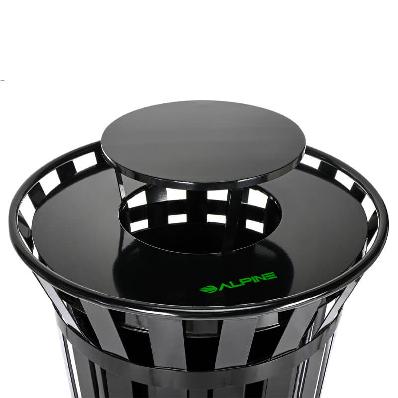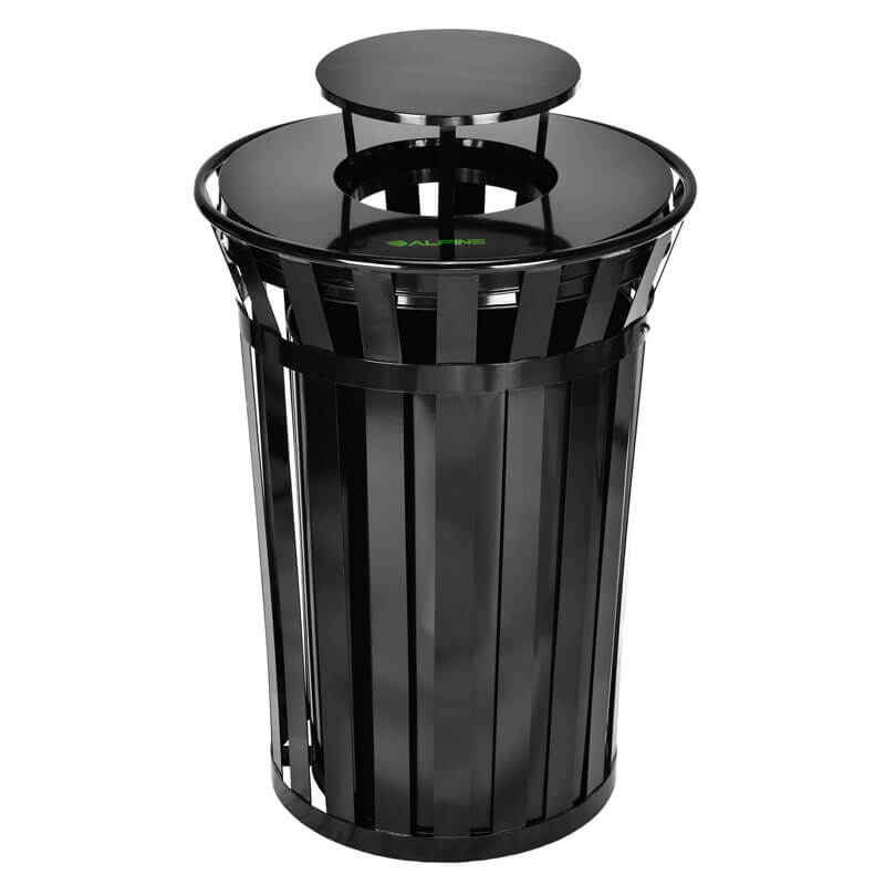 Alpine Industries Outdoor Metal Slatted Trash Receptacle with Rain Bonnet Lid - 38 Gallon Black ALP-479-38-1
