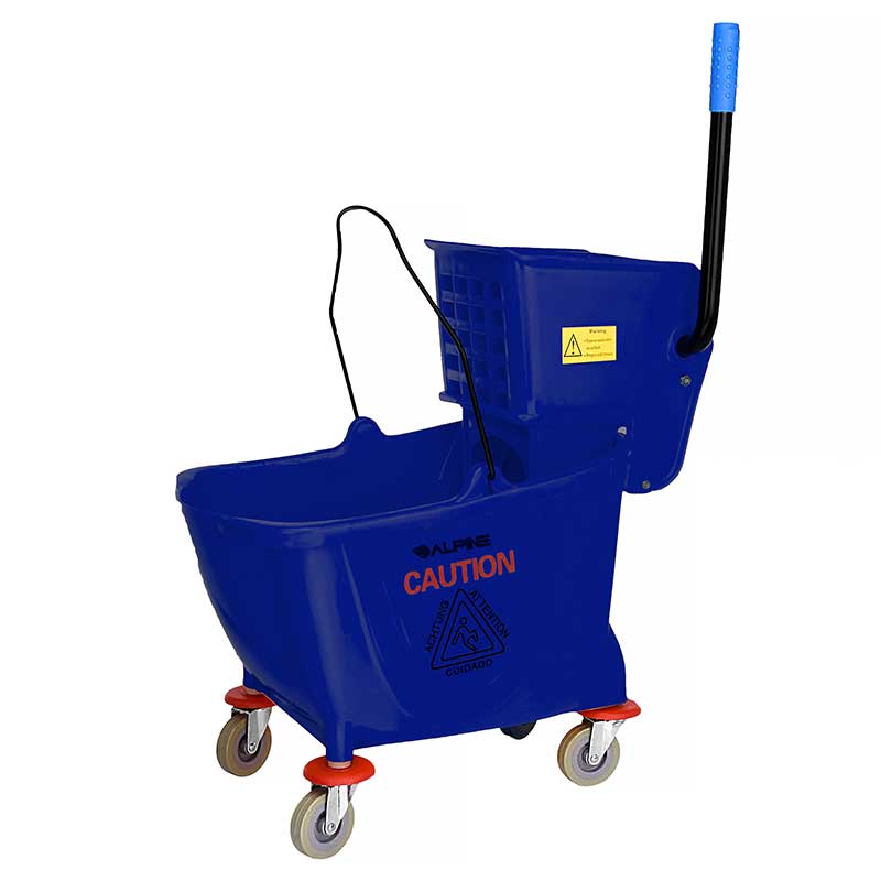 Safety: Each mop bucket has a trilingual caution sign printed on the sides to optimize visibility and accommodate a diverse array of people.