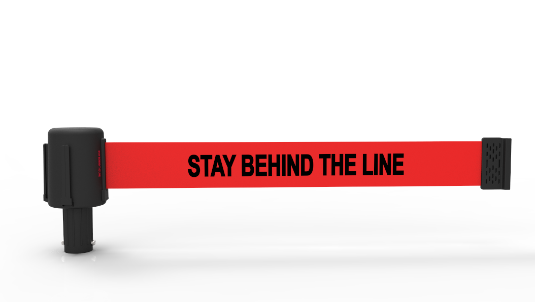 Banner Stakes PLUS PL4051 Red Stay Behind the Line Banner Replacement. Deliver the "STAY BEHIND THE LINE" warning safety message with clear, high visibility under any kind of weather condition. Banner Stakes PLUS Safety Barrier System Replacement Banner Head.