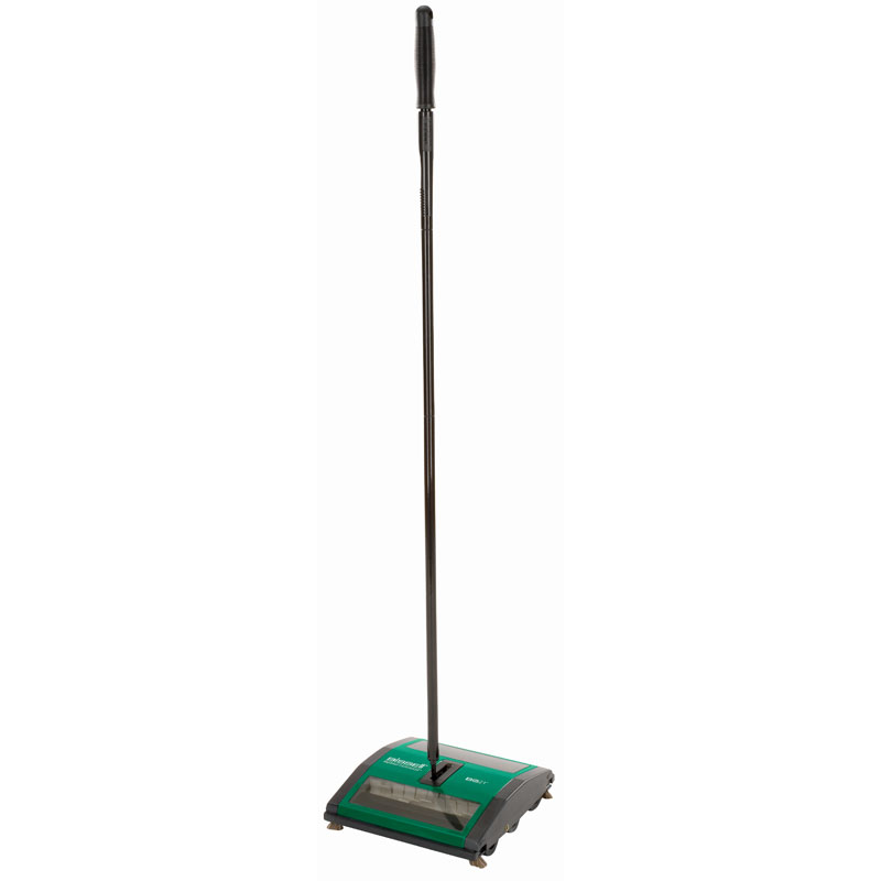 The BG21 manual sweeper is great for foodservice cleaning in restaurants and kitchens. The soft rubber wheels conform to a variety of floor surfaces, making this manual sweeper ideal for cleaning low pile carpet and bare floors. The BG21 model features dual rubber brushes for cleaning up wet messes in the kitchen.