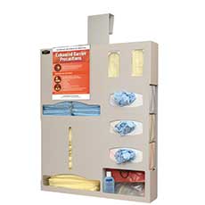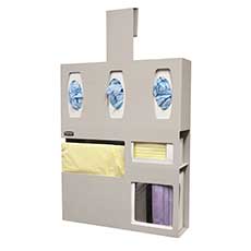 With the BD Series Protective Wear Isolation Bundles, you can keep a clean look while staying protected in the workplace or at home. The ABS plastic used in these bundles is chemical and stress-crack-resistant. They are a cost-effective solution that is ADA and CMS wall protrusion compliant and includes a protective wear organizer to hold gowns, aprons, overall jumpsuits, ear loop masks, and shield masks.