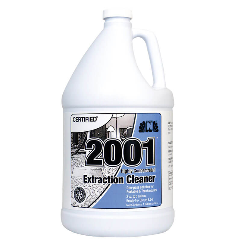 This products economically dilutes to 2 oz./5 gallons of water for a portable cleaning machine. 2001 is certified most popular extraction cleaner due to its high concentration and power. Safe for all carpets including 5th generation. pH 8.5-9