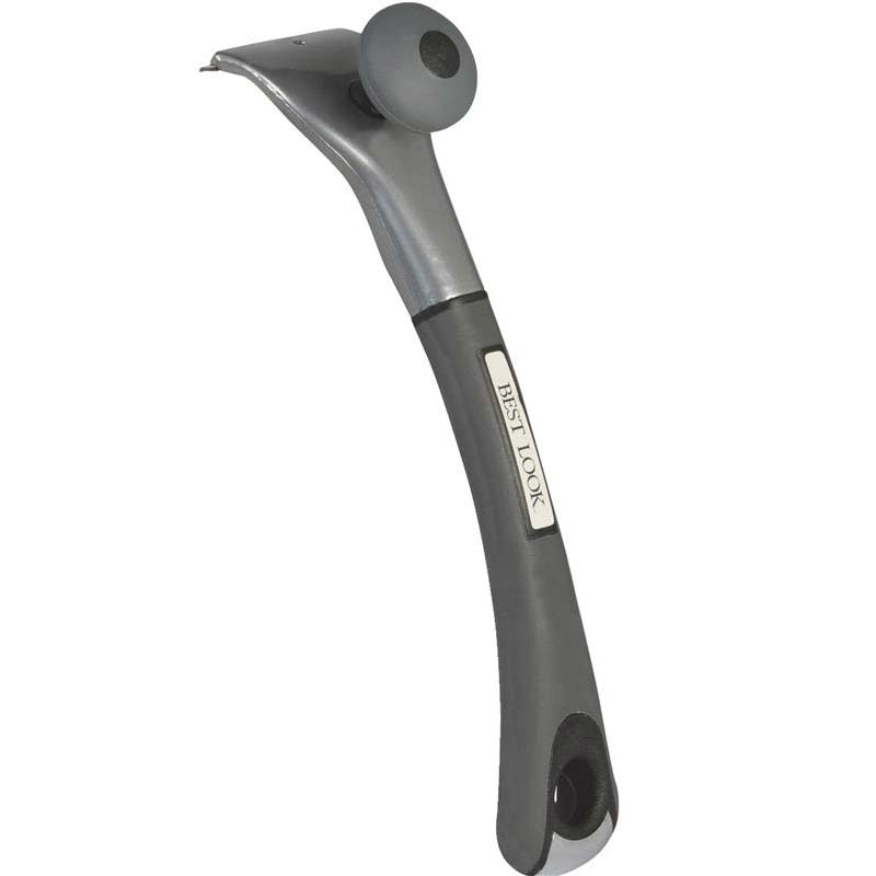 The carbide scraper with knob utilizes an extremely hard and durable 2.5 In. camber ground double edge blade that lasts 50 times longer than steel. This scraper can be used to aggressively scrape paint quickly and cleanly. The knob allows for extra leverage for added pressure when scraping. The handle also has a hammer end.