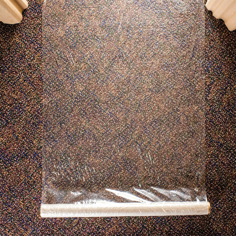 Carpet Shield is the best temporary carpet protection you can buy. It is a clear, self-adhering protective film for all types of carpeting. Carpet Shield's non-slip surface is a special blend of polyethylene which is highly resistant to tears or punctures. Ideal during remodeling, painting and moving, it minimizes clean-up time and damage claims. Available in a variety of sizes, the larger rolls are reverse-wound for faster application.
