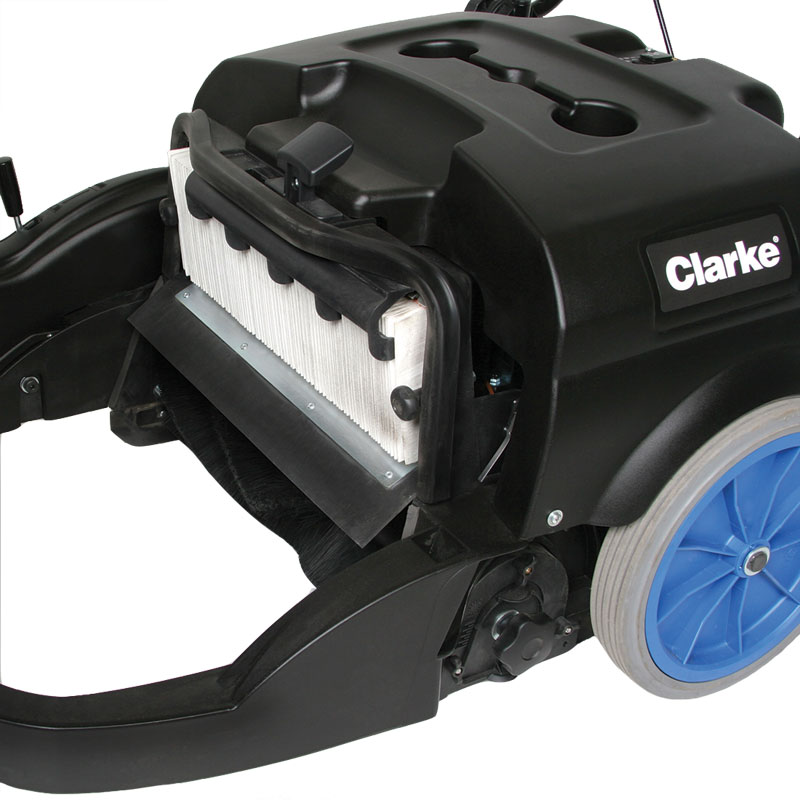 Designed to be rugged and versatile, Clarke’s new BSW 28 Sweeper has the performance for both hard floors and carpets. Featuring a 28 inch sweeping path, gel batteries, self propelled traction, and an active side broom that sweeps even the smallest debris and dust from the walls edge. The BSW 28 is very quiet at just 59 dB A and allows sweeping in noise sensitive areas. Large traction wheels provide smooth operation and mobility. The BSW 28 has been Green Certified by Clarke.