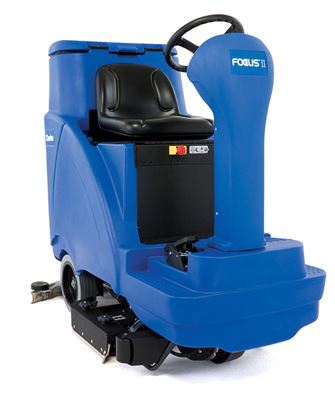 Featuring an open machine design, you can access the Focus II Rider driver compartment from the left or right and quickly modify the tools-free adjustable seat for maximum comfort. Offering best-in-class maneuverability and water pickup, the Focus II Rider's turning radius is ideal for cleaning tight spaces while its heavy-duty steel side skirts provide enhanced wipiing and water containment.