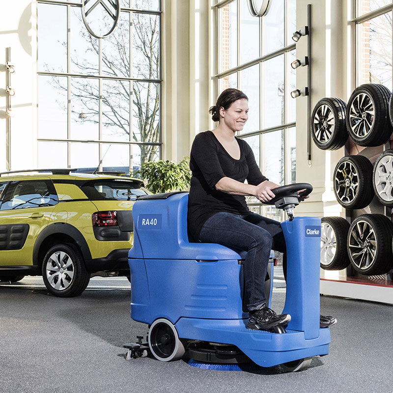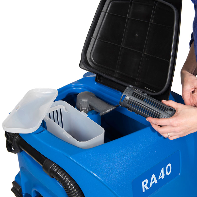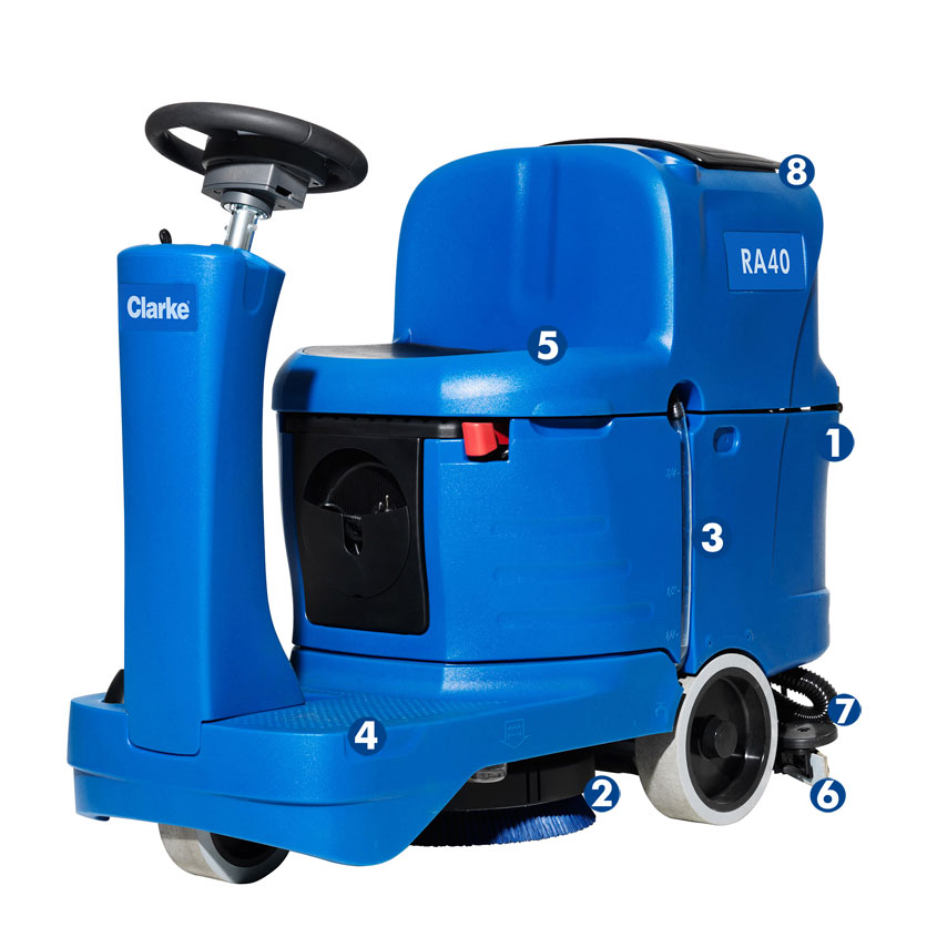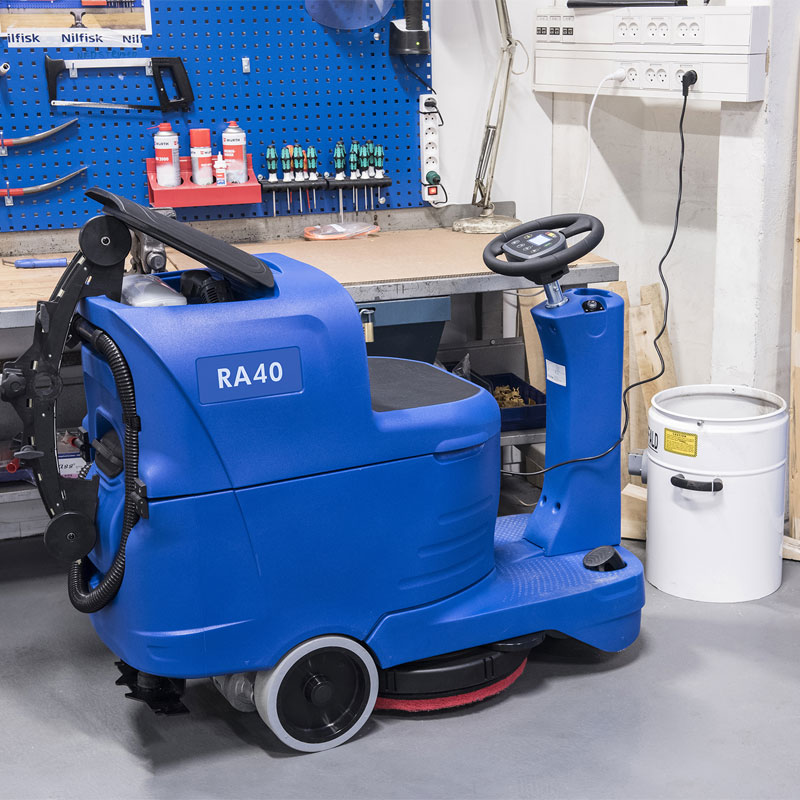 The small profile design of the RA40 provides full sightline visibility, a short turning radius and the ability to clean in tight spaces. It also contributes to a low center of gravity that, when combined with Safe-T-Steering, prevents tipping incidents. All these features contribute to a safer operation for both operators and other building occupants.
