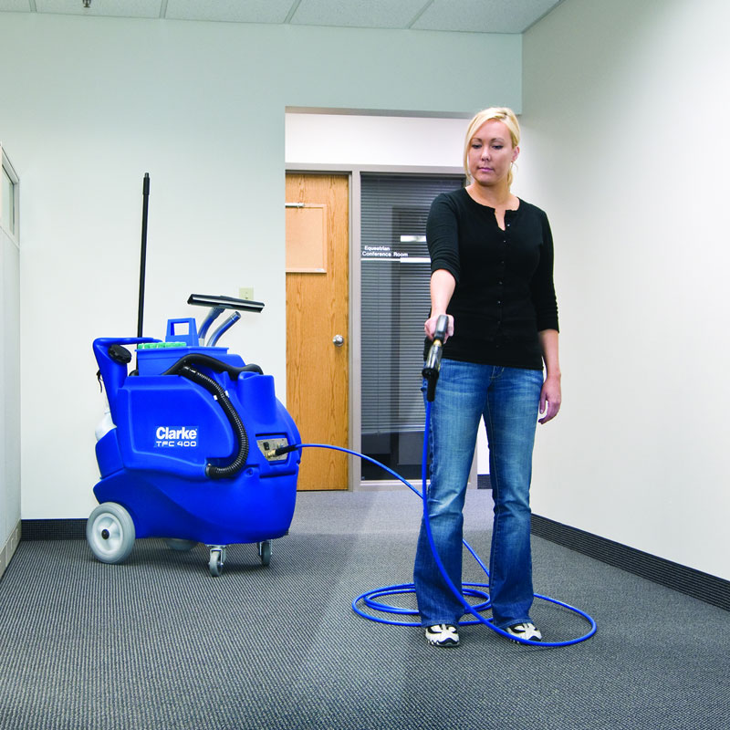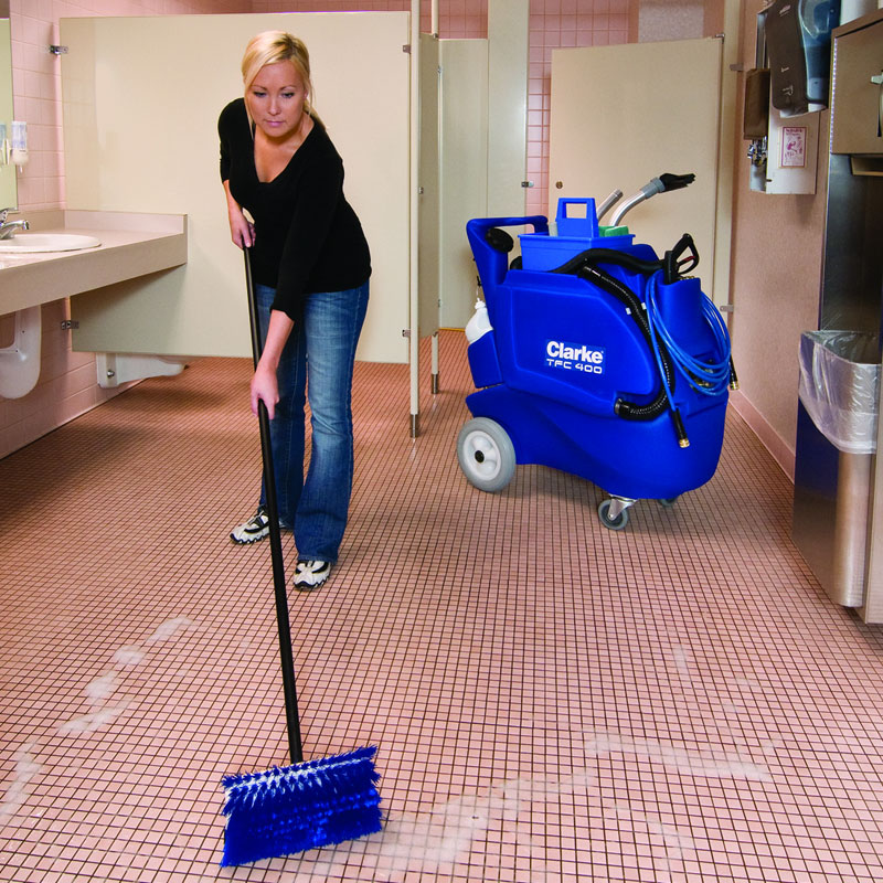 Restrooms, hallways, and other hard floor surfaces are easily cleaned with the TFC 400 cleaner. When combined with the optional stand up carpet wand, the TFC 400 will transition easily from cleaning hard surfaces to soft floor - saving time and eliminating the need for costly additional equipment.