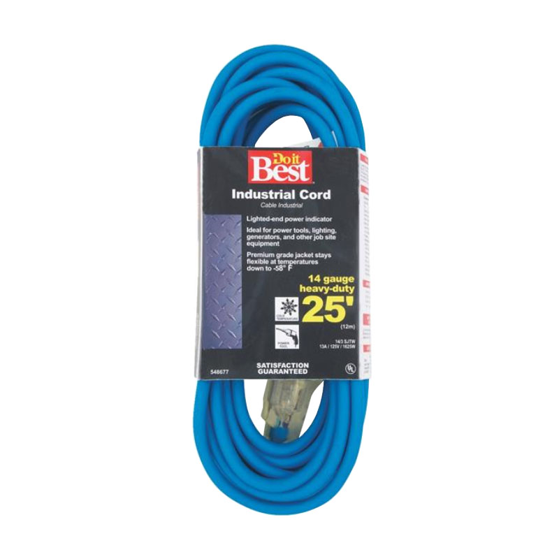 Cold Temperature Extension Power Cord - 14/3 - Blue - 25' Long