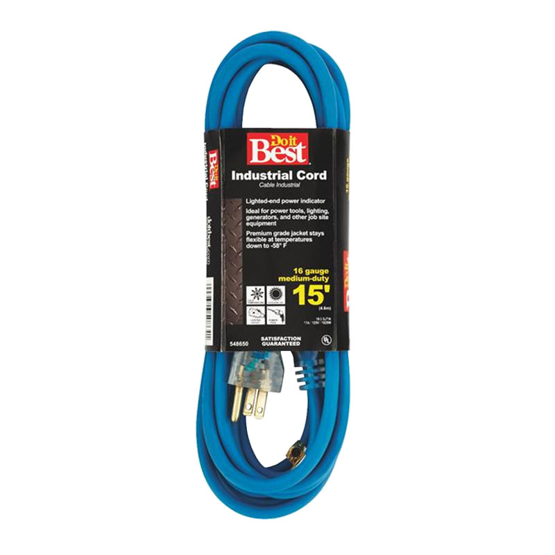 Cold Temperature Extension Power Cord - 16/3 - Blue - 15' Long